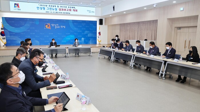 안성시(시장 김보라)는 지난 22일, 시청 대회의실에서 김보라 안성시장 등 시 관계자 30여명이 참석한 가운데 ‘안성형 그린뉴딜’ 성과보고회를 개최했다.