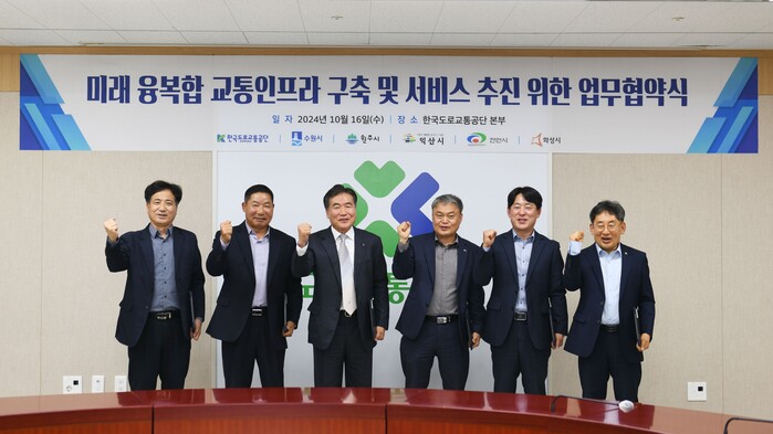 화성시(시장 정명근)가 16일 한국도로교통공단 본사(강원도 원주시 소재)에서 신호운영 전문기관인 도로교통공단과 4개 지방자치단체와 함께 ‘미래 융복합 교통 인프라 구축 및 서비스 추진’을 위한 업무협약을 체결했다.