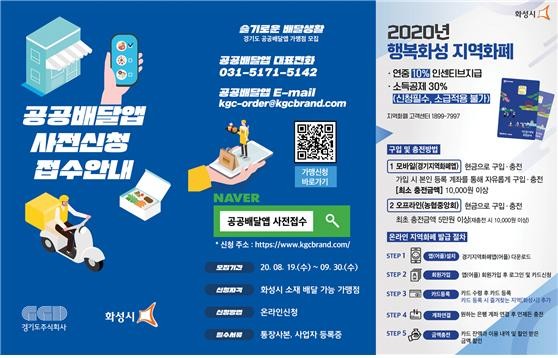 공공배달앱 입점은 화성시 관내 배달이 가능한 음식점이면 모두 참여 가능하며, 사업자등록증, 통장사본 등을 준비해 내달 30일까지 경기도주식회사 홈페이지(www.kgcbrand.com)에서 신청하면 된다.