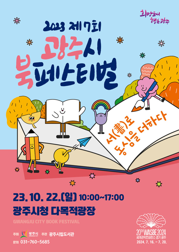 한편, 광주시 북 페스티벌은 누구나 참여할 수 있으며 행사 당일에도 참여 신청이 가능하다. 자세한 내용은 광주시립도서관 홈페이지(lib.gjcity.go.kr)를 확인하거나 중앙도서관 운영팀(031-760-5685, 5681)으로 문의하면 된다.