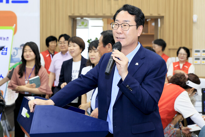 정명근 화성특례시장이 23일 향남읍 발안농협을 찾아 ‘농촌 왕진버스’ 진료 개시에 맞춰 현장을 점검하고 참여 의료진을 격려했다.