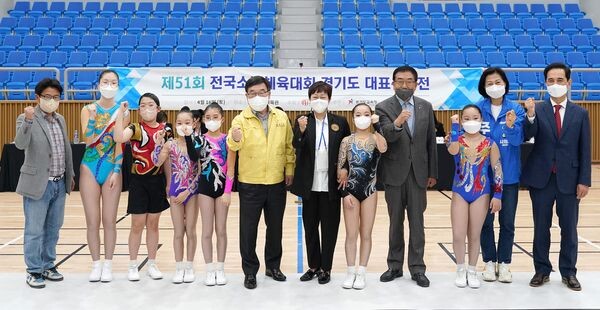 [로컬라이프] 송준형 기자 = 신동헌 광주시장은 16일, 광주시민체육관에서 열린 제51회 전국소년체육대회 경기도 대표 선발전(에어로빅 부문)에서 경기도 이웃 인근 도시에서 출전한 어린 선수들을 격려하고 응원했다.