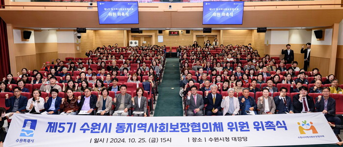 25일 시청 대강당에서 열린 위촉식에서 김현수 수원시 제1부시장은 제5기 신규위원 40명에게 위촉장을 수여했다. 제5기 동 지역사회보장협의체는 공공위원(동장) 44명, 민간위원 785명 등으로 구성됐다. 임기는 2026년 10월 25일까지이다.