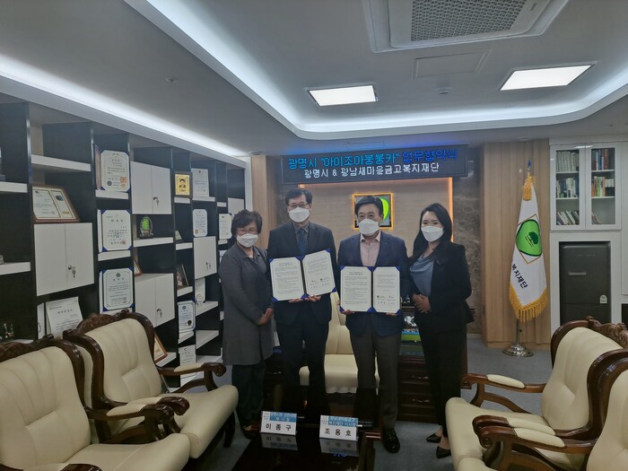 광명시는 21일 광남새마을금고 복지재단과 임산부 및 24개월 이하 영유아 가정의 병원, 관공서 방문 편의를 돕는 아이조아 붕붕카 운영에 관한 업무 협약식을 가졌다.