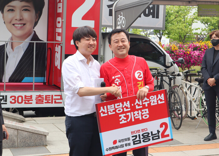 김용남 후보는 “집권 여당의 후보로서 이준석 당대표와 함께 수원시민의 오랜 염원인 신분당선·신수원선의 조기 착공을 반드시 실현하겠다고 수원시민 앞에서 약속드린다”고 말했다.