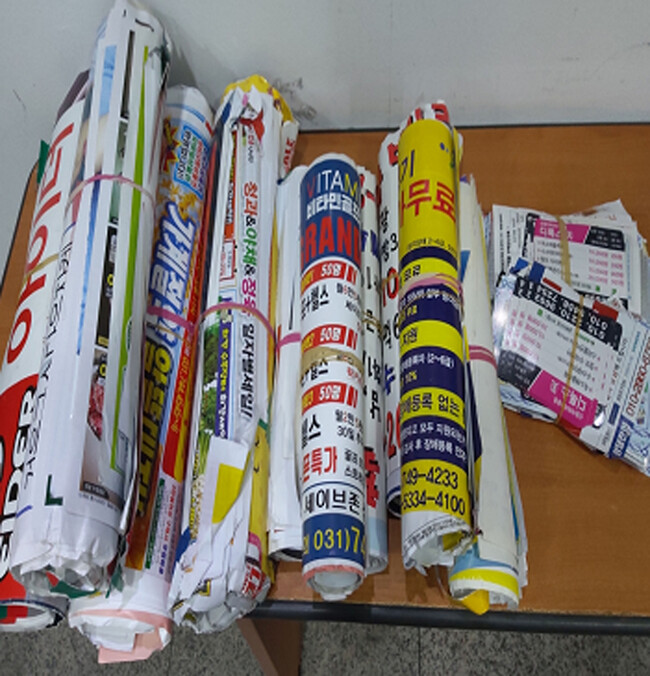 사진/성남시민이 100장 단위로 묶어온 불법광고 전단(사진제공=성남시)