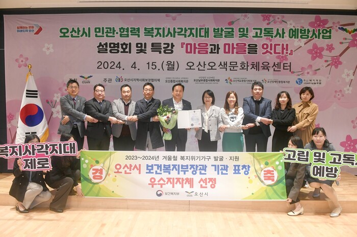오산시(시장 이권재)는 2023-2024년 겨울철 복지 위기가구 발굴 지원 우수 지자체 평가에서 보건복지부 장관 표창을 수상했다고 15일 밝혔다.