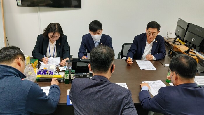 경기도의회 도시환경위원회 박명수 의원(국민의힘, 안성2)이 안성시의 개발 사업을 제한하는 규제의 원인인 유천·송탄 상수원 보호구역 해제를 위해 22일 경기도의회 의원사무실에서 관계자들과 논의에 나섰다.