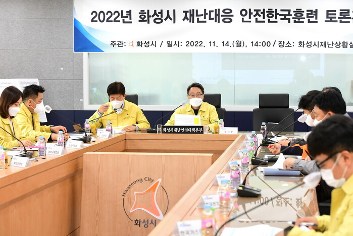 먼저 14일 화성시청 재난안전상황실에서 토론훈련이 실시됐으며, 다음 날인 15일에는 화성시남부노인복지관에서 대형화재 발생을 가정한 현장훈련이 추진될 예정이다.