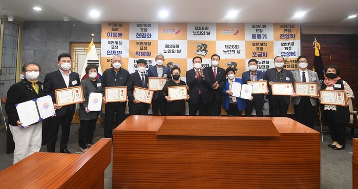 이에 이권재 오산시장은 “국가발전과 경제발전에 기여해 오신 어르신들을 공경하고 예우하는 것은 당연한 도리이다”며 “지역사회 노인복지에 귀감이 돼준 표창 수여자들에게 깊은 존경과 감사를 보낸다”고 말했다.