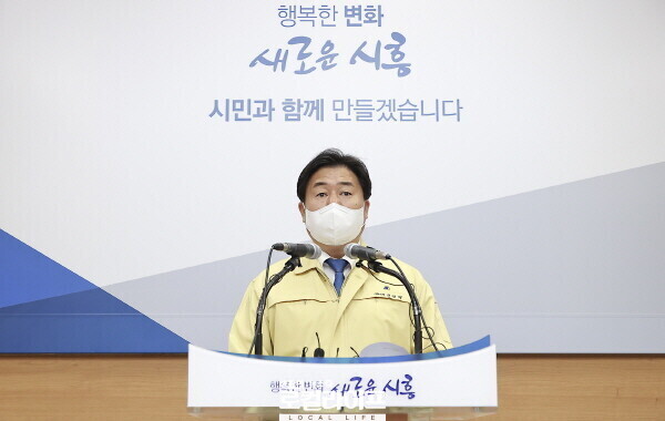 | ▲ 임병택 시흥시장의 브리핑 모습. (사진제공=시흥시) |
