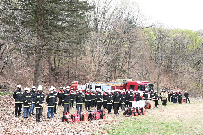 사진/ 지난 14일 수원소방서와 함께 진행한 산불 진화 모의 훈련(사진제공=수원시)
