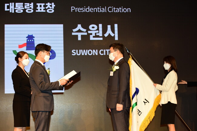 대통령상은 ‘2020 지방재정 우수사례’ 수상을 비롯해 ▲제22회 지속가능발전대상(수원시 공유냉장고) ▲제22회 아름다운 화장실대상(미술관 옆 화장실) ▲2020 하반기 적극행정 우수사례 경진대회(긴급차량 우선 신호시스템) ▲제22회 대한민국 디자인대상(지방자치단체 부문) ▲2020 안전문화대상(기초지자체 부문) 등 6개였다.