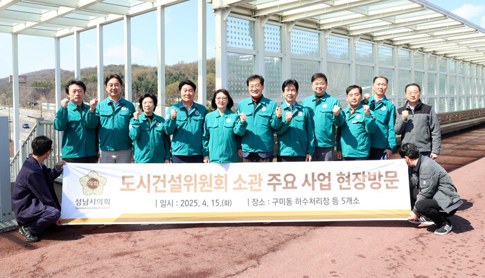 성남시의회 도시건설위원회(위원장 박은미)는 4월 15일 제302회 임시회를 대비하고자 구미동 하수처리장 1단계 사업(뮤직센터, 카페) 현장 등 주요 현장 5개소를 방문하여 추진 상황을 점검했다.