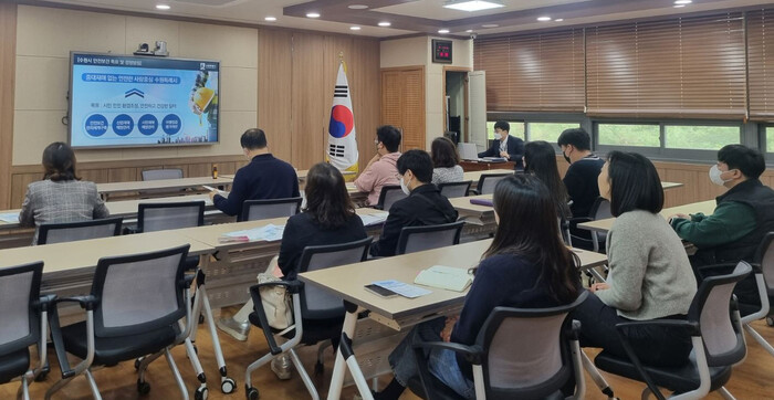 사진/12일 영통구청 각 부서 안전보건 담당자를 대상으로 첫 컨설팅을 진행하고 있다.(사진제공=수원시)