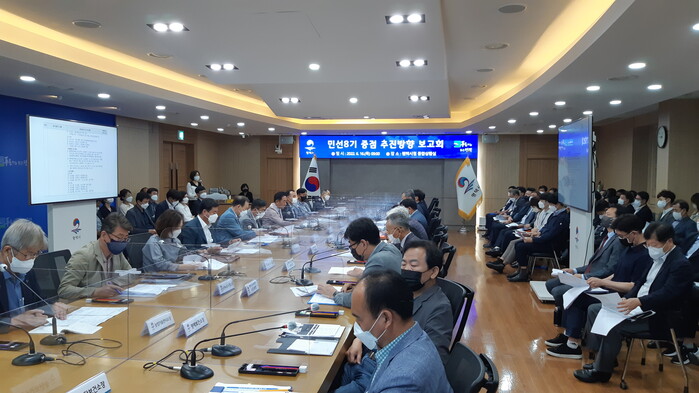 평택시(시장 정장선)가 6월 16일부터 21일까지 4일간 시청 종합상황실에서 간부 공무원이 참석한 가운데 ‘민선8기 중점 추진방향 보고회’를 개최하고 민선8기 시정업무 준비를 시작한다.