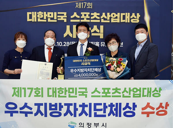 [로컬라이프] 송준형 기자 = 의정부시는 28일 서울 송파구 올림픽홀에서 열린 ‘제17회 대한민국 스포츠산업대상’에서 우수 지방자치단체상(문화체육관광부장관 표창)을 수상했다고 밝혔다.