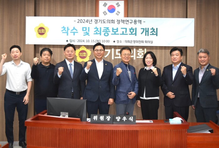 한편, 이날 최종보고회는 양우식 위원장과 이용욱 부위원장(더민주, 파주3), 국민의힘 교섭단체 김정호 대표(국힘, 광명1), 더불어민주당 교섭단체 최종현 대표(더민주, 수원7), 이혜원 의원(국힘, 양평2), 연구 수행기관인 (재)한국산업관계연구원 김경철 책임연구원과 연구진 등이 참석했다.