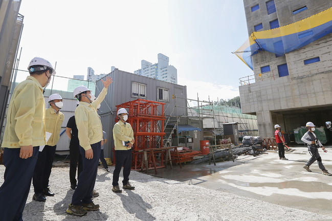 이날 오전동 동아루미체 아파트 공사현장, 부곡 도깨비시장, 의왕산업단지 공사현장을 찾은 김 시장은 건설공사장 타워크레인과 그늘막, 청사초롱 등의 강풍취약시설 안전조치 사항 등을 꼼꼼히 점검하며 보완사항 등을 지시했다.