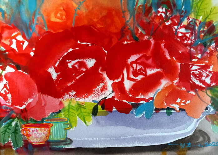 수원시 북수원도서관이 27일부터 10월 16일까지 ‘우리시 예술인 박경희 개인전: Rose & CoffeeⅡ(장미&커피)’를 개최한다.