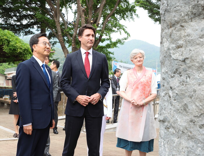 김동연 경기도지사가 18일 쥐스탱 트뤼도(Justin Pierre James Trudeau) 캐나다 총리를 만나 6.25 가평전투에 참전했던 캐나다군을 추모했다.