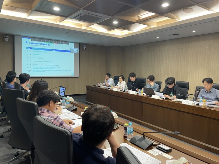 사진/2025 제20회 수원 ITS 아태총회 조직위원회 학술분과 위원들이 회의를 하고 있다.(사진제공=수원시)