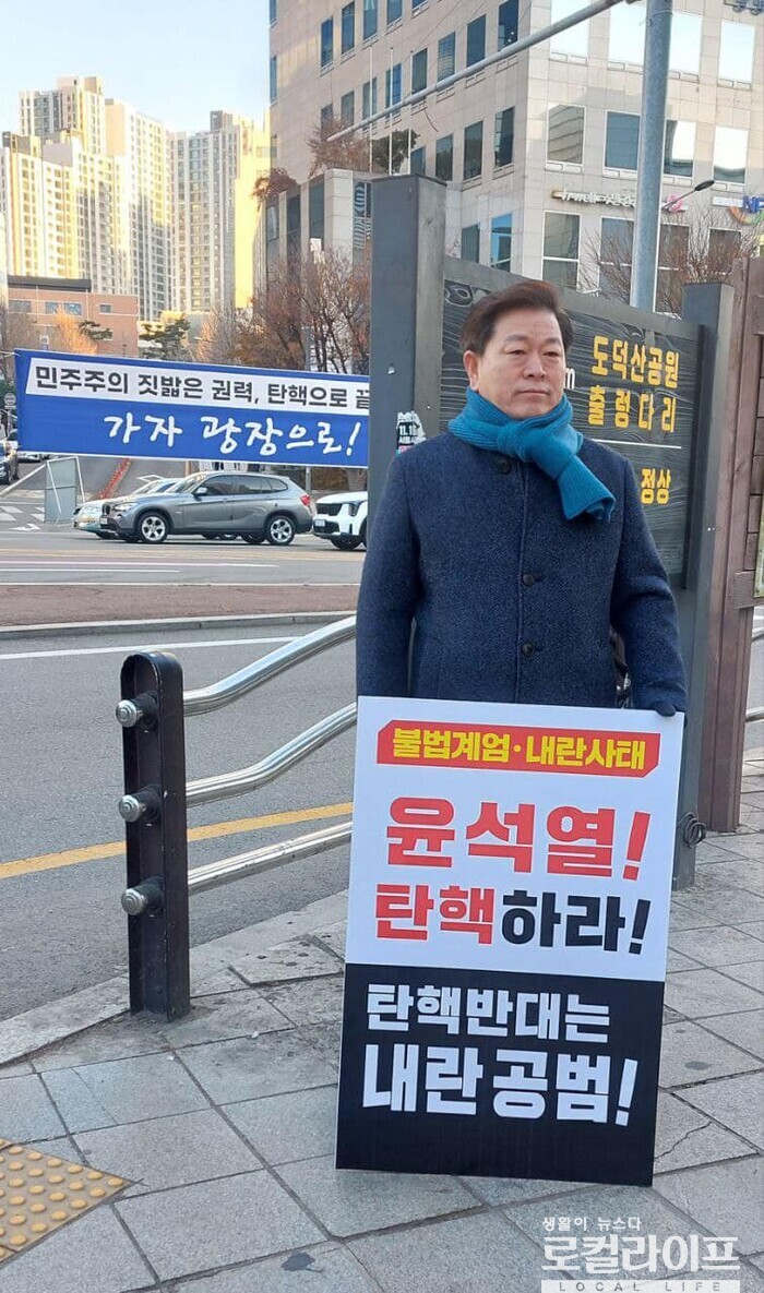 [광명=로컬라이프] 송준형 기자 = 박승원 광명시장이 '윤석열 탄핵 촉구 1인시위'에 동참했다.