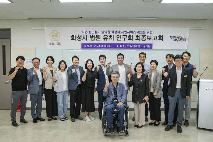 화성시의회 의원연구단체인‘화성시 법원 유치 연구회(대표의원 이계철)’는 8월 8일,YBM연수원에서 연구용역 최종보고회를 가졌다.