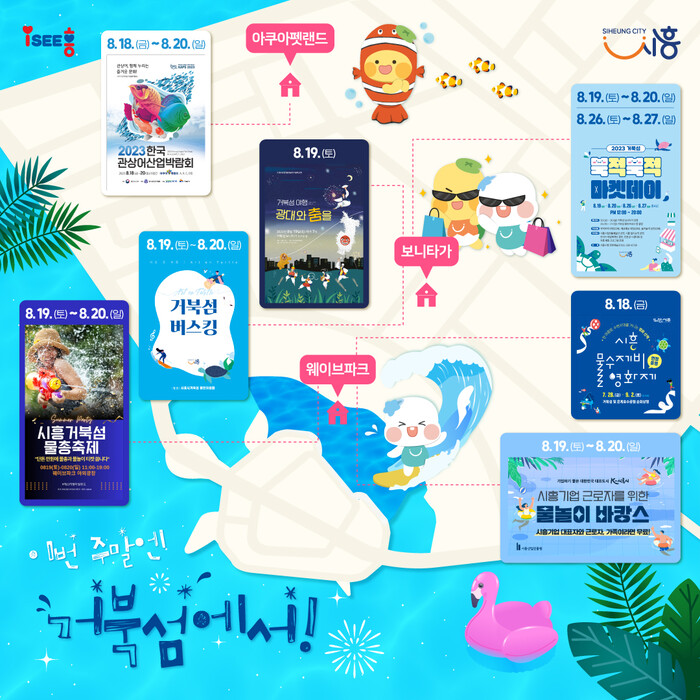 기나긴 더위와 일상에서의 해방감을 느끼고 싶다면, 이번 주말 시흥시 거북섬에 가보자. 가족과는 힐링을, 친구들과는 즐거움을, 연인과는 사랑을 담뿍 느낄 수 있는 마법 같은 시간이 이 여름의 낮과 밤을 가득 채울 것이다.