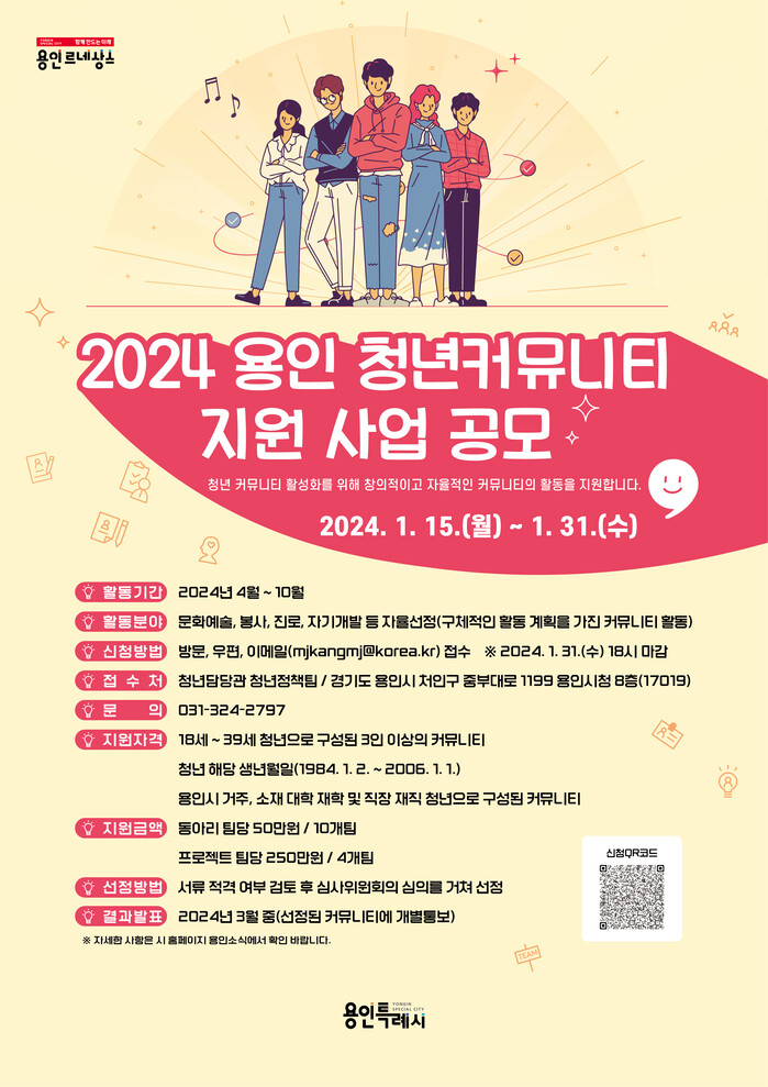 대상은 용인에서 활동하고 있는 3인 이상의 청년 모임이다. 구체적으로 시에 주소지를 둔 18세 이상 39세 이하 시민이나 시에 소재한 대학교 재학생, 직장 근로자 등이다.
