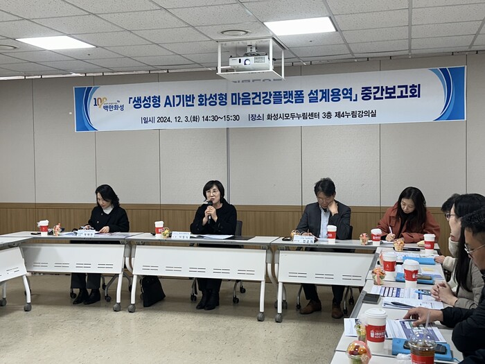 화성시(시장 정명근)가 3일 모두누림센터에서 ‘생성형AI 기반 화성형 마음건강플랫폼 설계용역’ 중간보고회를 개최했다.