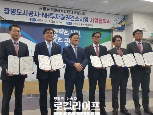 광명시는 2일 오후, 광명시청 중회의실에서 광명도시공사와 NH투자증권 컨소시엄 간 ‘광명 문화관광복합단지 조성 사업 협약’을 체결했다. NH투자증권 컨소시엄에는 NH투자증권(주), HDC현대산업개발(주), 미래에셋대우, 제일건설(주)이 참여한다.