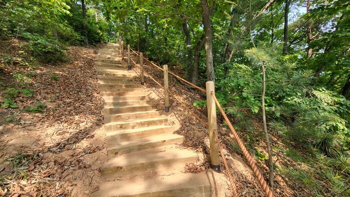 시는 1억5000만원을 투입, 급경사 구간에 목재계단과 안전로프, 보행매트 등 안전장치를 설치한다.