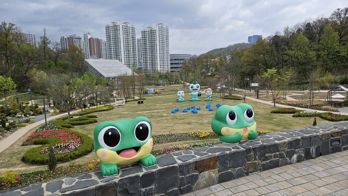 이번 전시는 수원시에서 최초로 발견된 멸종위기 야생동물 1종 보호종인 ‘수원청개구리’를 모티브로 한 캐릭터 수원이를 중심으로 구성했다. 수원이가 논을 찾아다니다가 수목원의 논정원을 발견하고, 아름다운 정원에 반해 시민들을 초대한다는 컨셉이다.