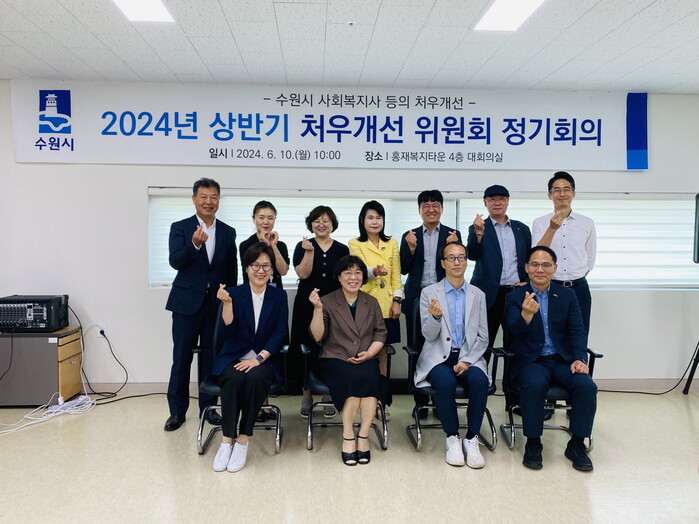 수원시(시장 이재준)는 10일 수원시홍재복지타운 대회의실에서 ‘2024 사회복지사 등의 처우개선위원회’ 상반기 정기회의를 열고, 안건(돌봄휴가 기준정립 및 통합운영방안 마련)을 심의했다.