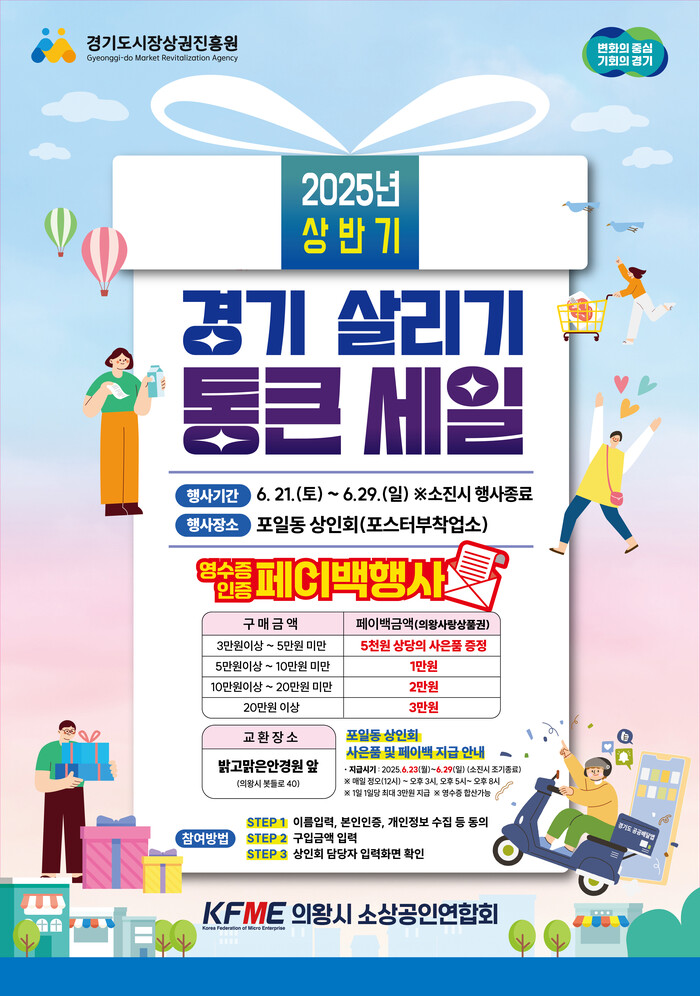 의왕시소상공인연합회와 의왕시 관내 7개 상권은 침체 된 경기 활성화를 위해“2025년 경기 살리기 통큰 세일”을 진행한다.