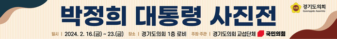 경기도의회 국민의힘(김정호 대표의원)은 이달 16일부터 23일까지 도의회 1층 로비에서 ‘박정희 대통령 사진전’을 개최한다고 밝혔다.