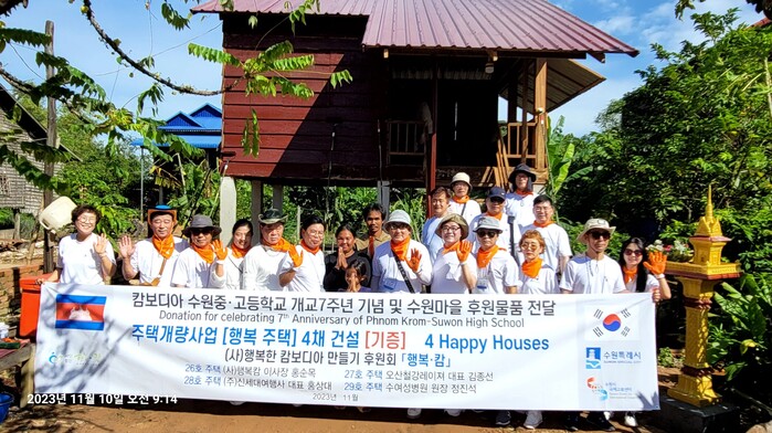 지난 11월 10~11일 황인국 제2부시장을 비롯한 수원시 대표단이 (사)행복캄, 의료봉사단 등과 함께 캄보디아 시엠립주에 있는 ‘수원마을’을 방문해 봉사활동을 했다. (사)행복캄 홍순목 이사장을 비롯한 회원 15명이 함께 봉사활동에 참여했다.