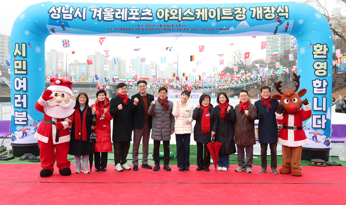 성남시의회(부의장 안광림을 비롯한 의원들)는 20일 탄천종합운동장 전면 탄천변에서 열린 야외 스케이트장 개관식에 참석했다. 이날 개관식은 겨울철 도심 속 여가 공간을 제공하기 위한 취지로 마련됐다.