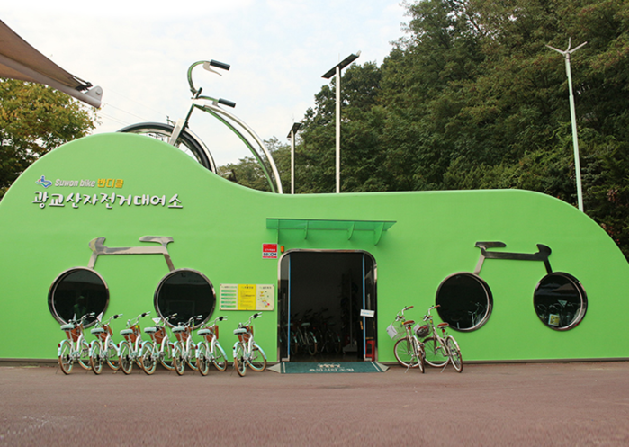 공영자전거대여소는 행궁동(화성행궁광장)과 광교산(버스 종점, 반딧불이 쉼터 옆)에 있다. 화성행궁광장 자전거대여소는 매일 오전 10시부터 오후 6시까지, 광교산 자전거대여소는 주말(토~일요일) 오전 10시부터 오후 6시까지 운영한다.