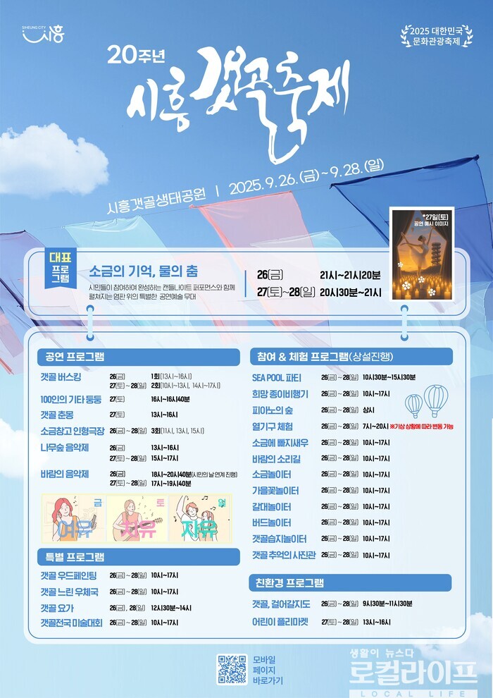 | ▲ '제20회 시흥갯골축제'가 '스무 해의 기억, 바람에 핀 소금꽃'을 주제로 9월 26일부터 28일까지 개최된다. 사진은 축제 프로그램 포스터. (사진제공=시흥시) |