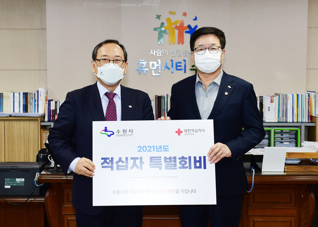 [로컬라이프] 수원시가 대한적십자사 경기도지사에 ‘2021년 적십자 특별회비’ 500만 원을 전달했다.