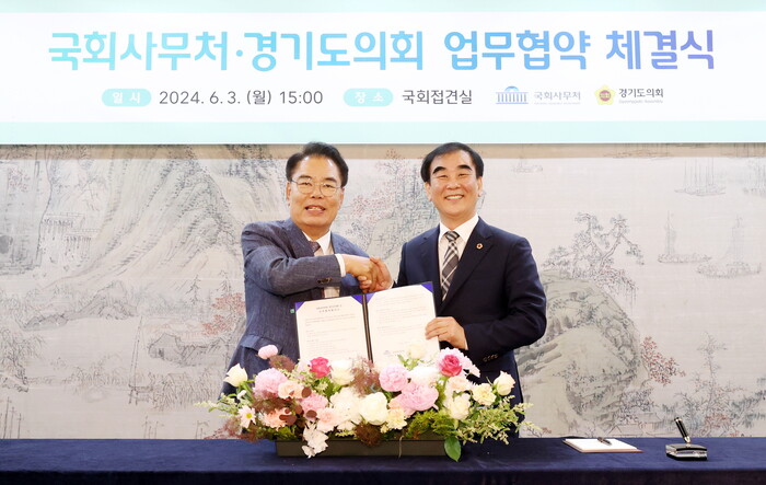 경기도의회(의장 염종현)가 3일 국회사무처(사무총장 백재현)와 의정연수 분야에서 상호협력을 강화하기 위한 협약을 체결했다.