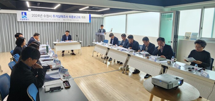 수원시(시장 이재준)는 29일 수원시 청년지원센터에서 김태관 도시개발국장 주재로 ‘수원시 주거실태조사 최종보고회’를 열었다. 수원시 주거실태조사는 통계청의 승인 통계(제611006호)로 지난 5월 27일부터 6월 24일까지 4000가구(주거취약계층 1000가구 포함)를 대상으로 이뤄졌다.