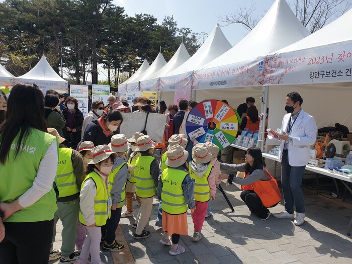 장안구보건소는 7~8일 만석공원 일원에서 ‘시민 참여형 건강체험터’를 운영하고, 시민들에게 ▲금연 ▲영양 ▲구강 ▲만성질환 ▲신체활동 ▲국가암검진 ▲모자보건 ▲감염병 예방·관리 등에 대한 건강정보를 제공했다. 또 시민들에게 보건소의 사업을 홍보하고 안내했다.