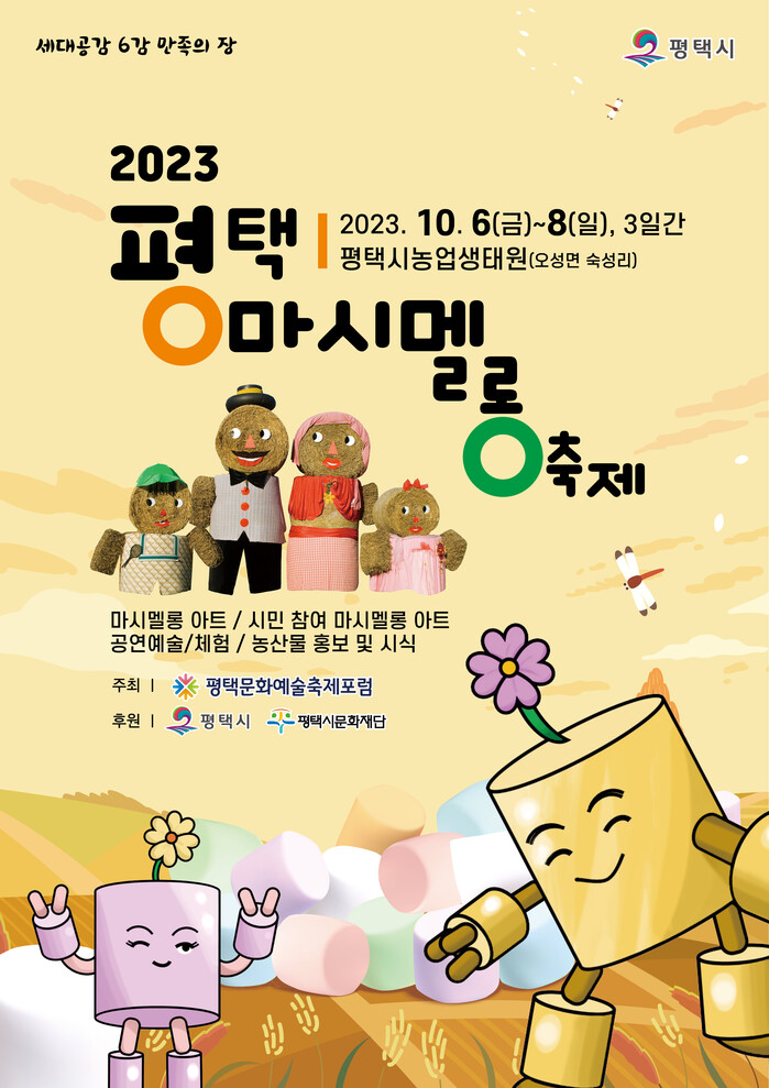 평택시문화재단 ‘2023년 지역문화 콘텐츠 발굴 및 지원 사업’으로 선정된 ‘평택마시멜롱축제’가 10월 6일부터 8일까지 사흘간 평택시농업생태원에서 화려한 막을 올린다.