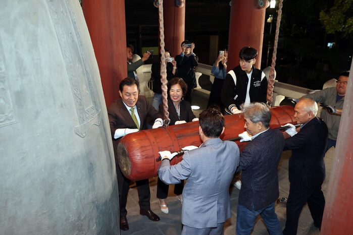 [로컬라이프] 송준형 기자 = 이재준 수원특례시장은 6일, ‘제60회 수원화성문화제’를 축하하며 시민들과 여민각 종을 힘껏 울렸다.