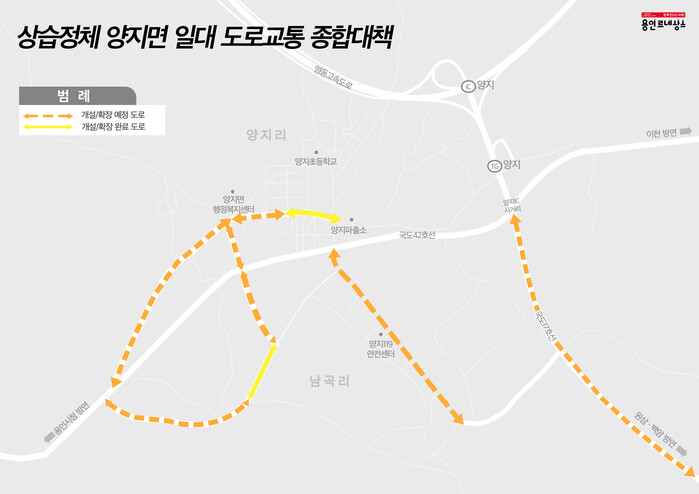양지면은 영동고속도로 양지IC와 국도 42호선과 국도 17호선 등이 교차하는 교통 요지로 최근 주변 지역이 급속도로 개발되면서 평일 출퇴근 시간은 물론이고 주말까지 주요 도로가 많이 막혀 시민들이 큰 불편을 겪고 있는 지역이다.