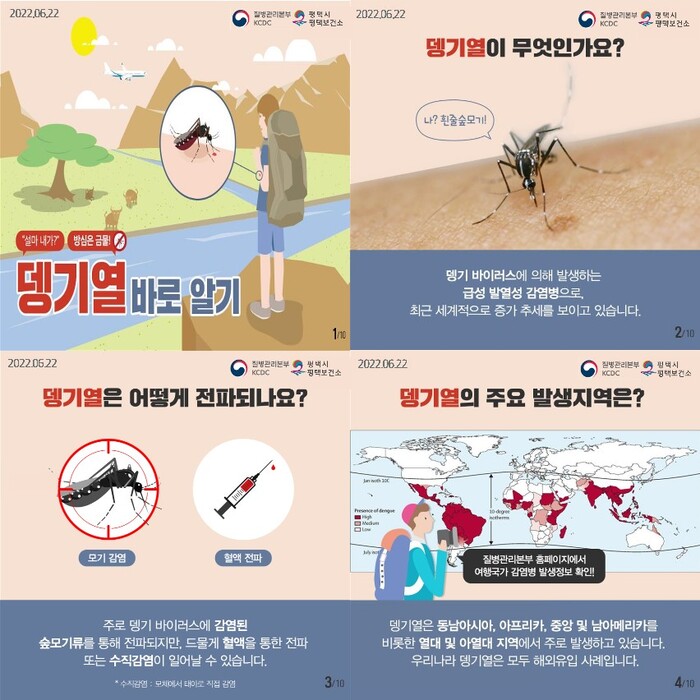 평택시(시장 정장선)에서는 해외여행의 수요가 급증하고 있는 요즘, 베트남 등 방문 후 뎅기열에 감염되는 사례가 지속적으로 발생하고 있어, 동남아시아 출국을 준비하는 시민들에게 뎅기열에 감염되지 않도록 예방수칙 준수를 당부했다.