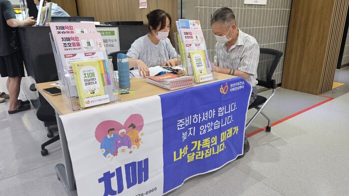 사진/화홍병원에서 치매안심센터 서비스 부스를 운영하고 있다.(사진제공=수원시)